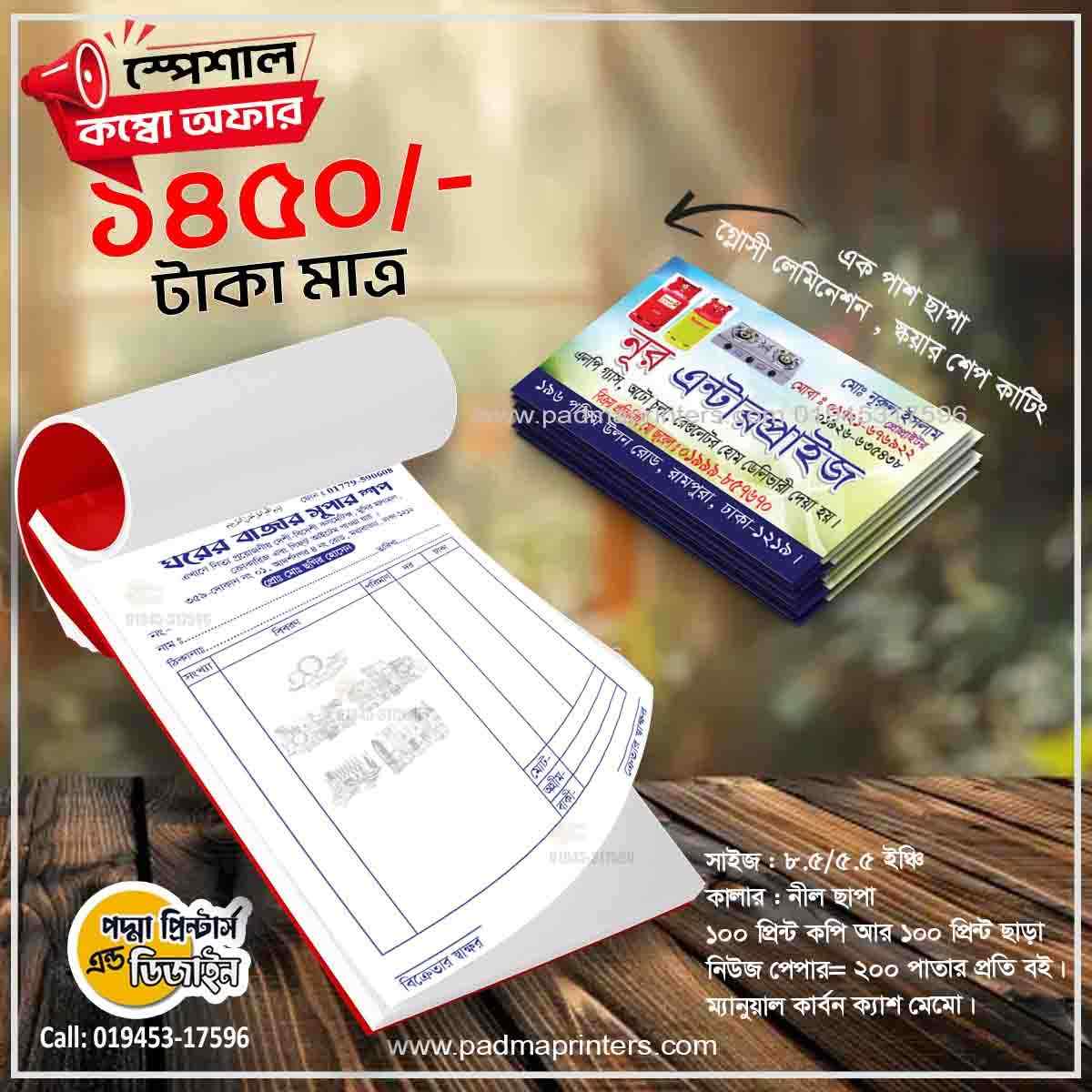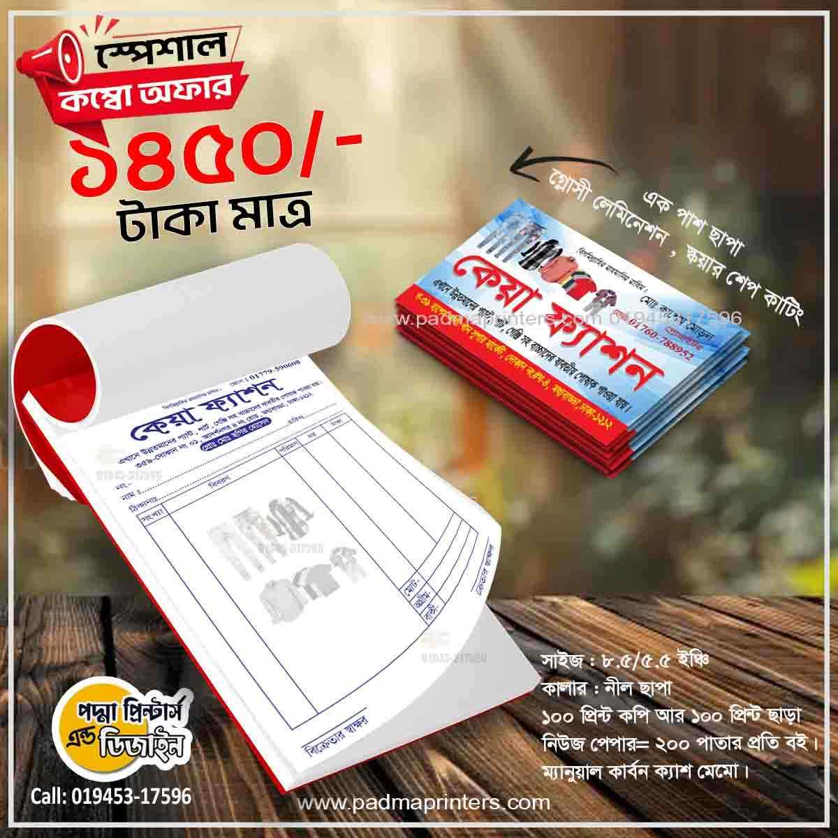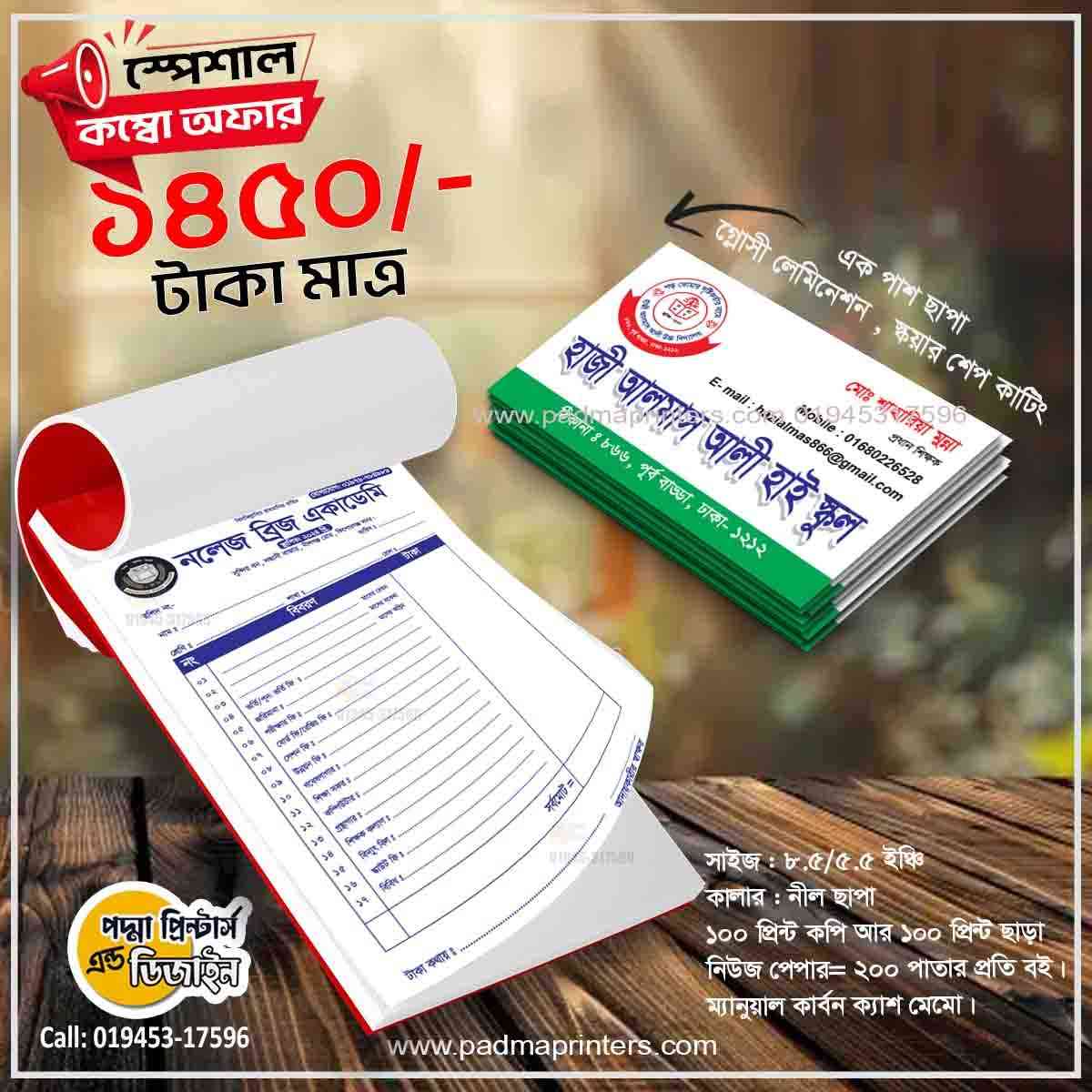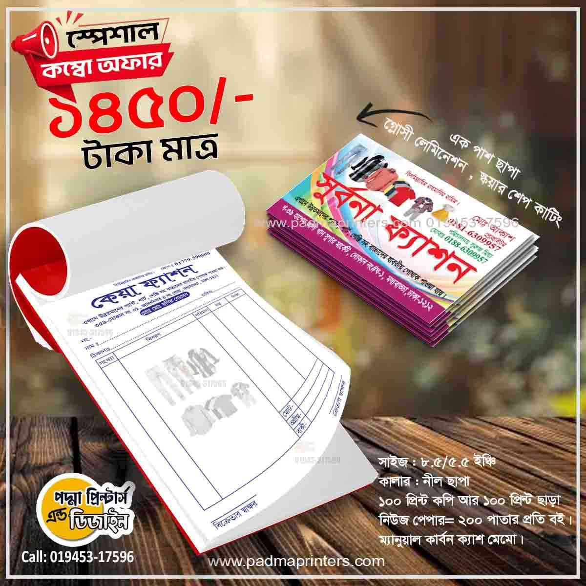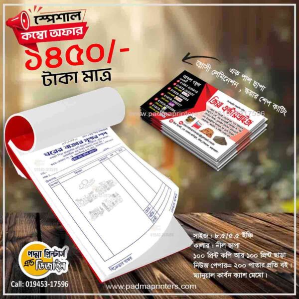 (1000পিস ভিজিটিং কার্ড এবং 1000পিস ক্যাশ মেমো )