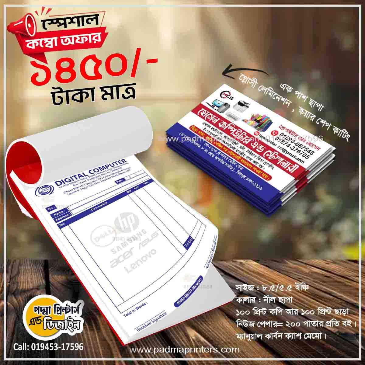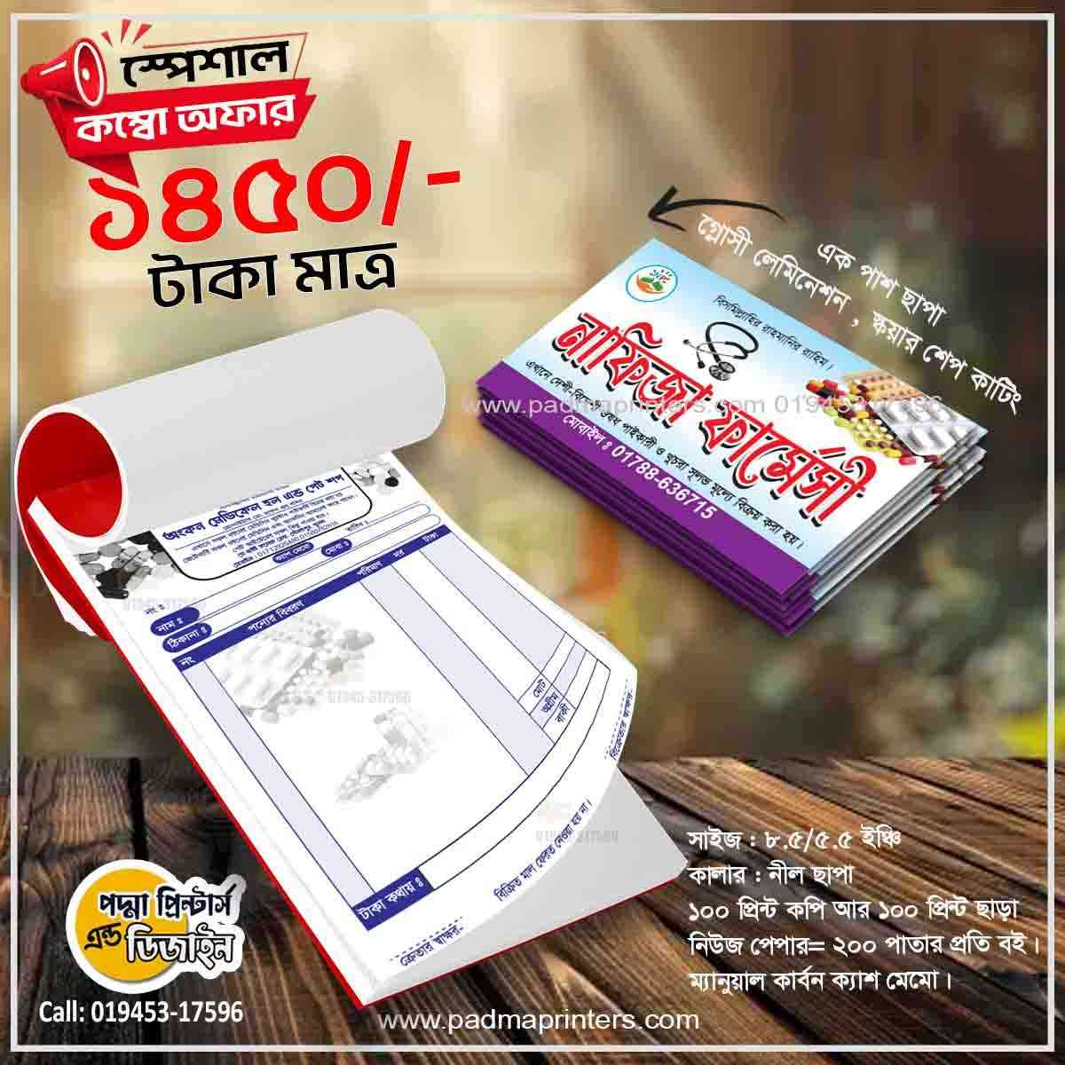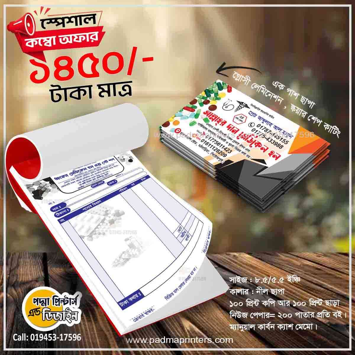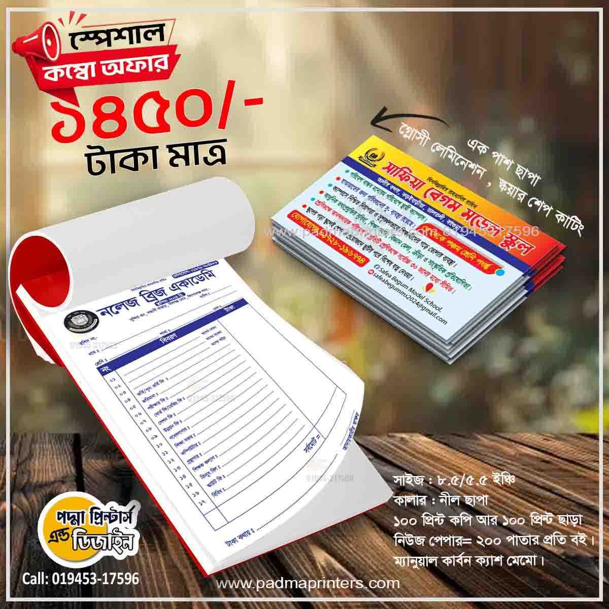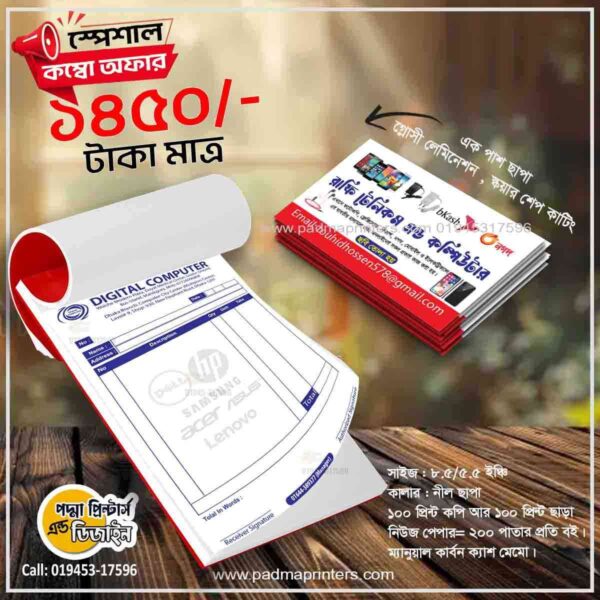(1000পিস ভিজিটিং কার্ড এবং 1000পিস ক্যাশ মেমো )
