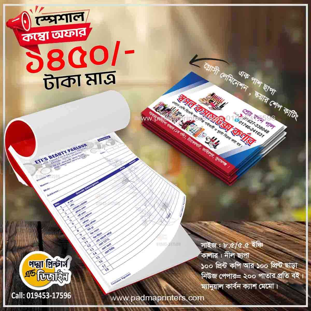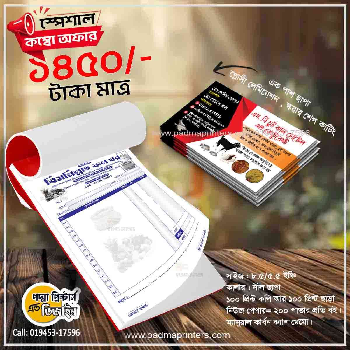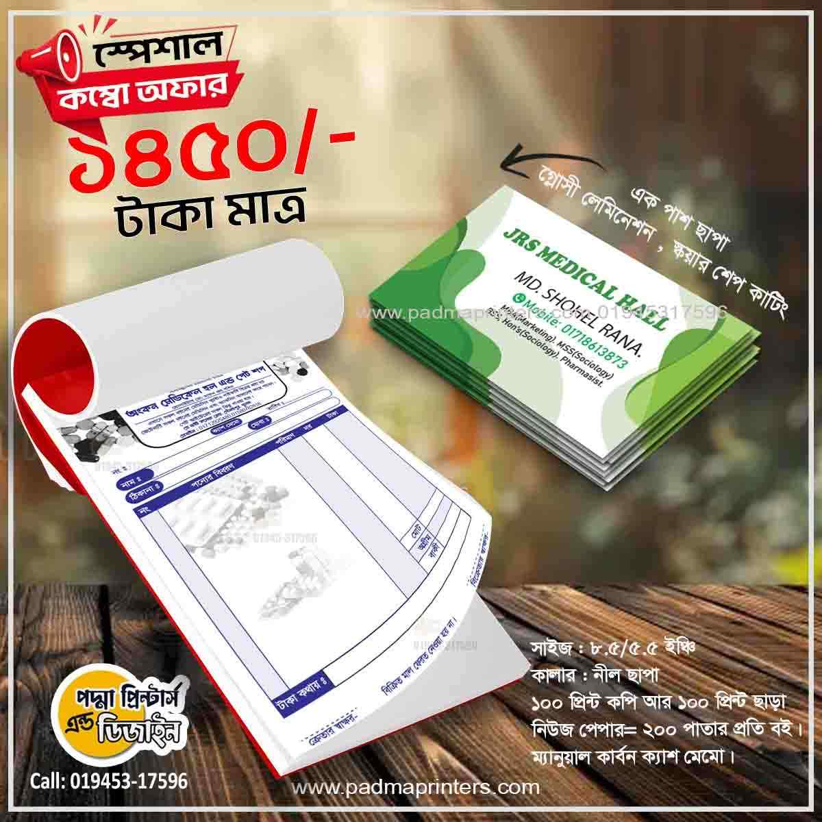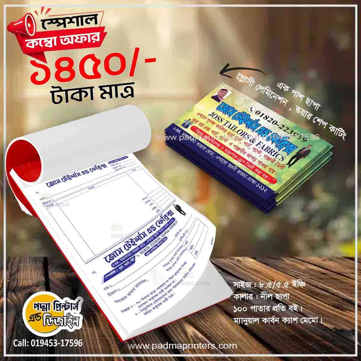 (1000পিস ভিজিটিং কার্ড এবং 1000পিস ক্যাশ মেমো )