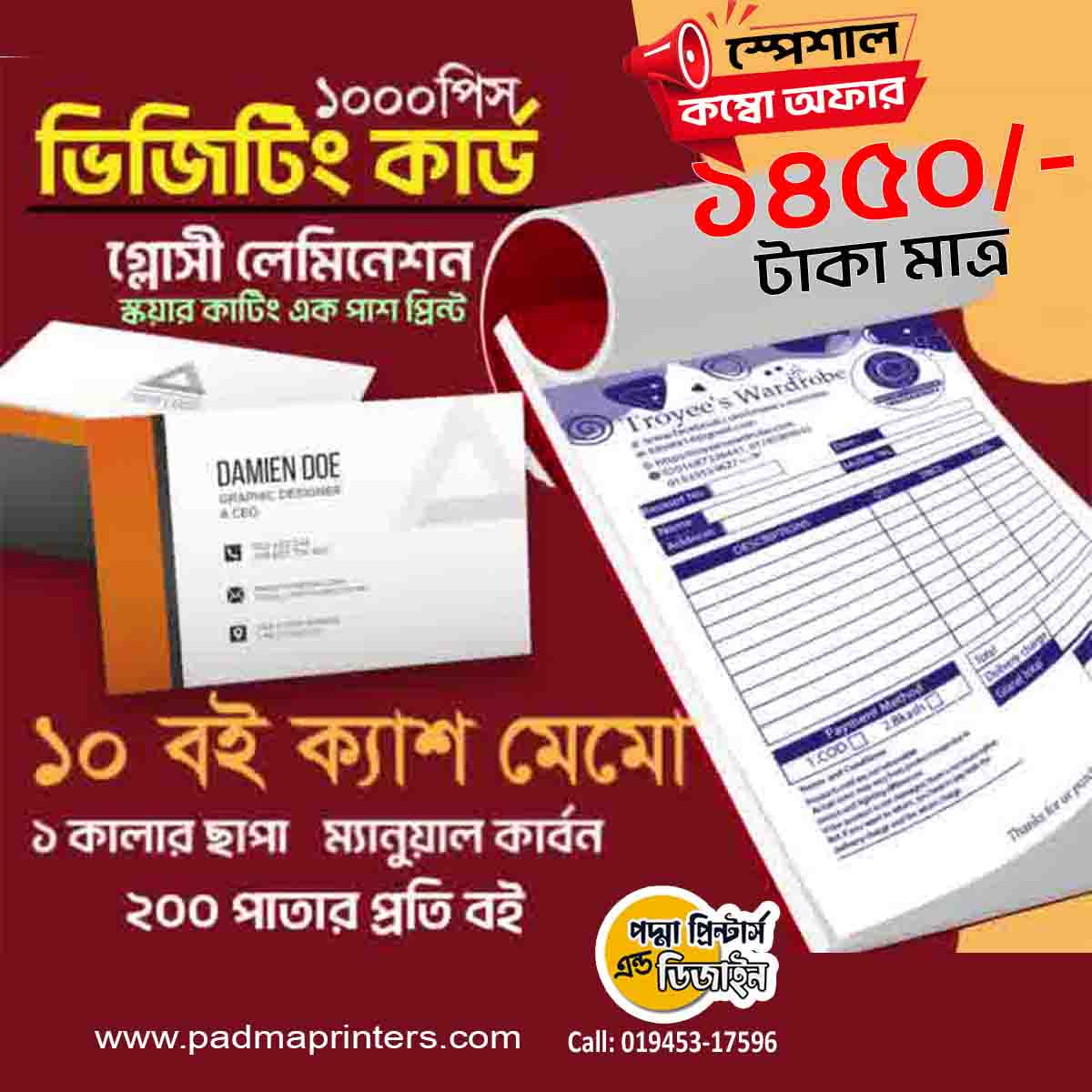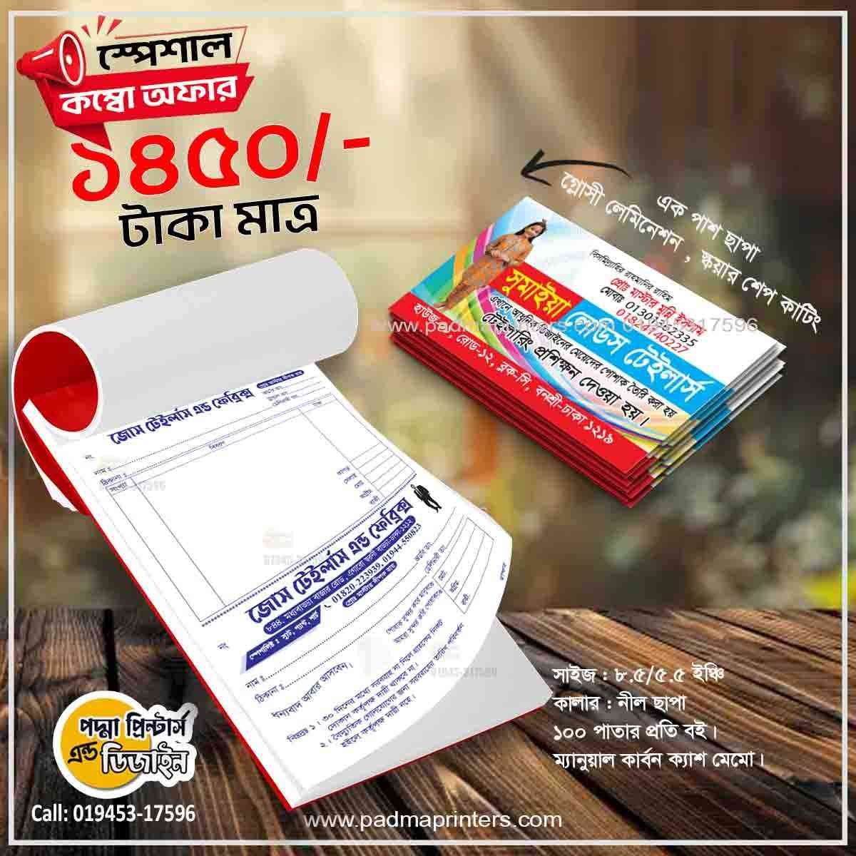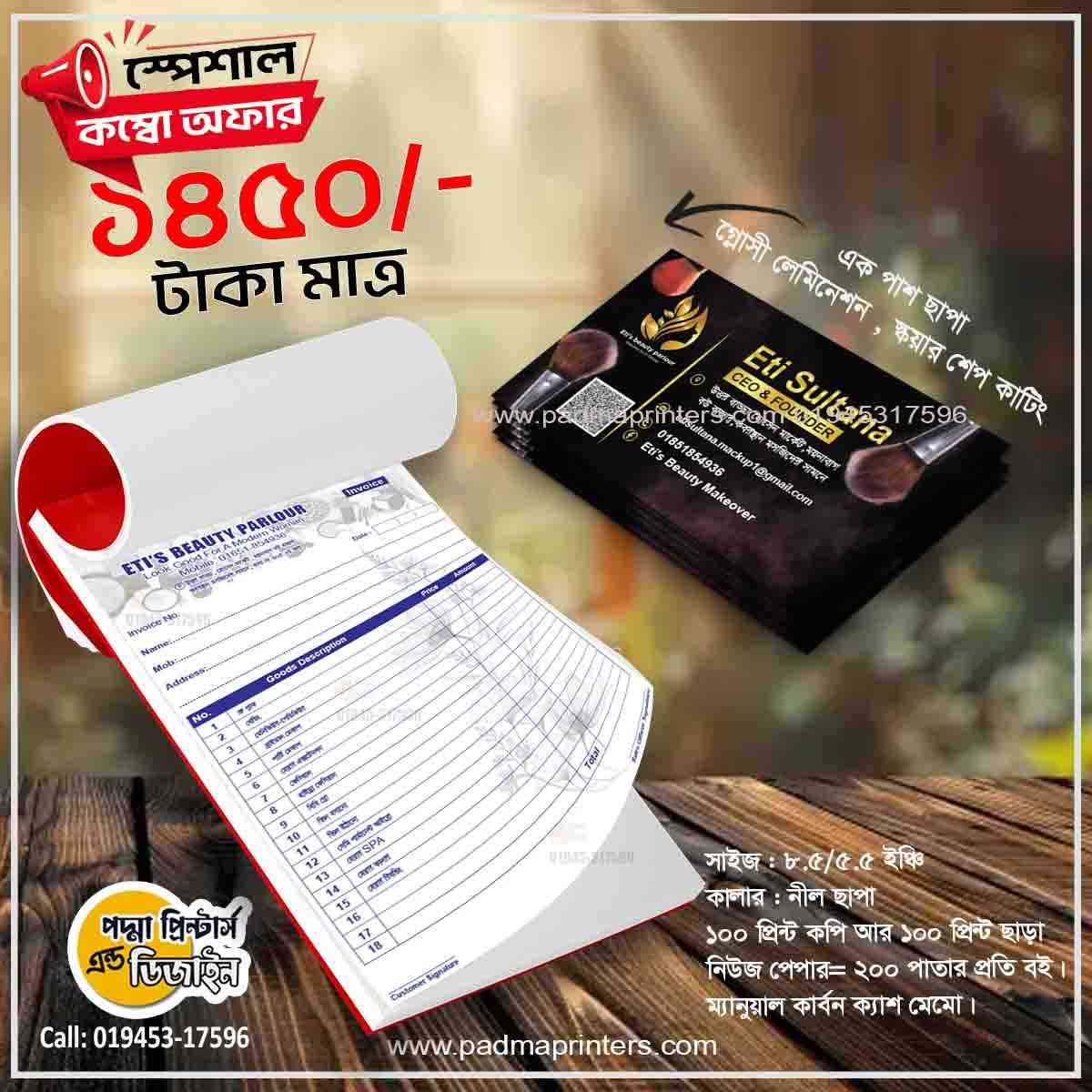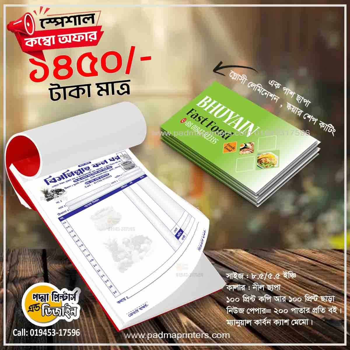 (1000পিস ভিজিটিং কার্ড এবং 1000পিস ক্যাশ মেমো )